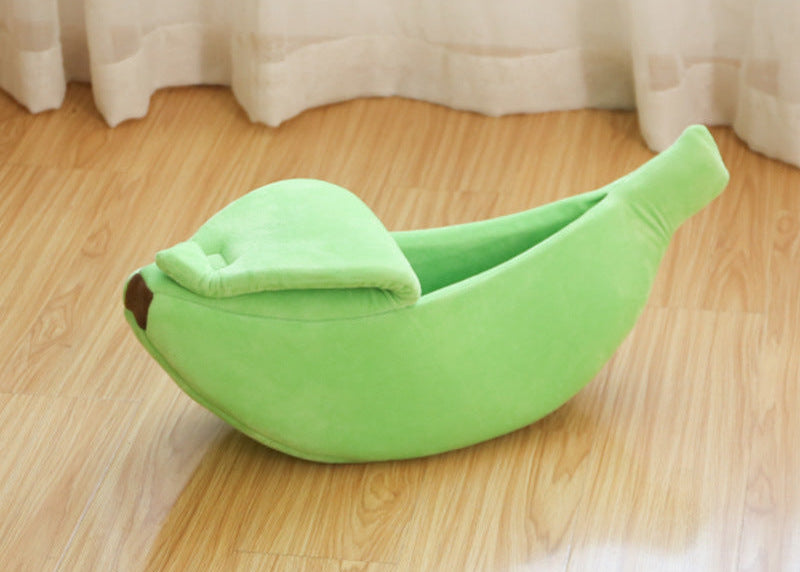 半開きの「皮」部分がペットの安心感を高め、まるで小さな秘密基地のように心地よい空間を演出します🍌