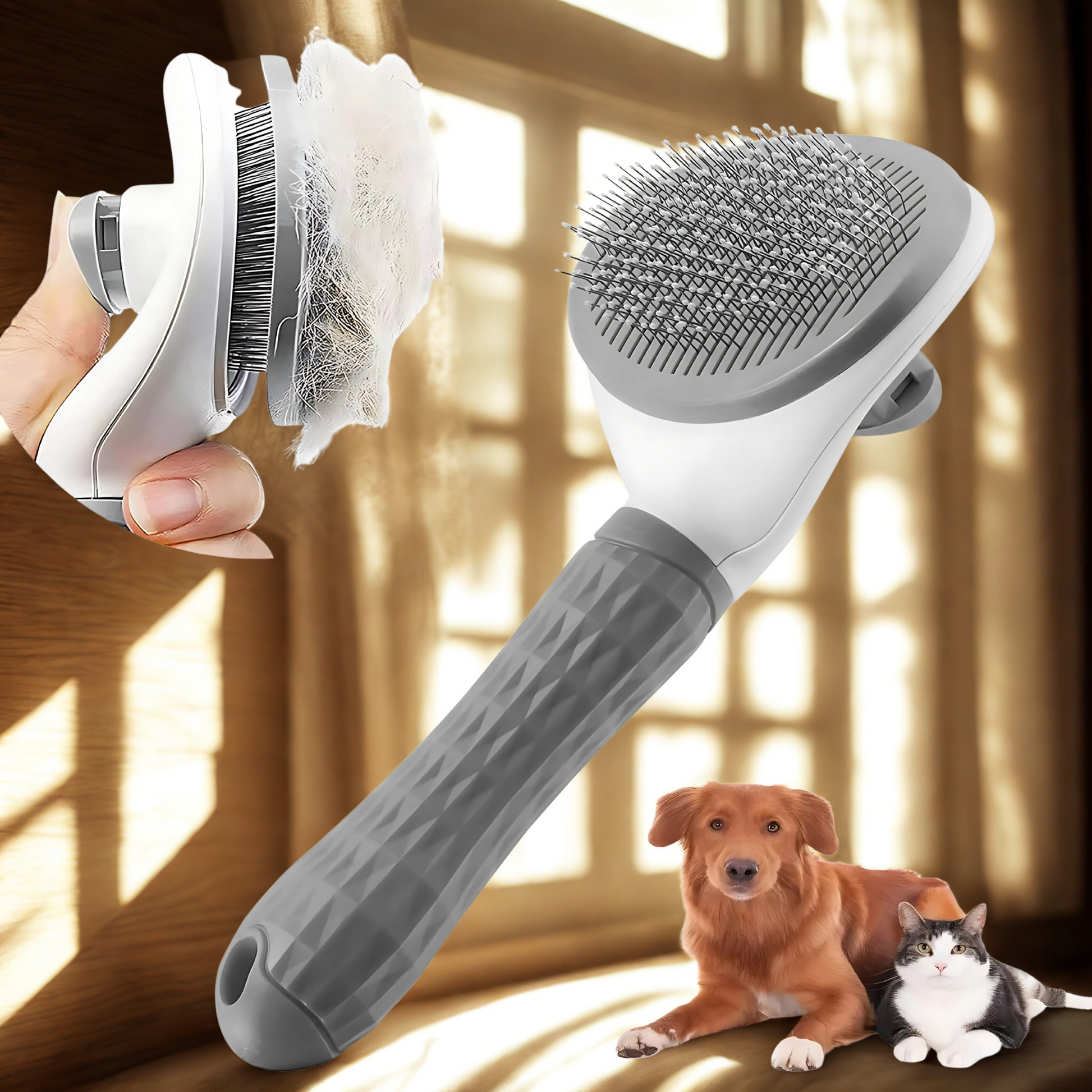 この高機能ブラシで、ペットの被毛を健康に保ち、家中の抜け毛を減らせます。